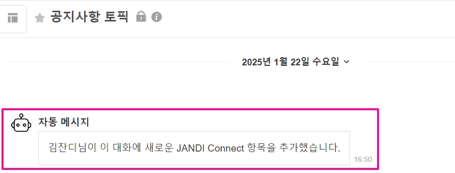 잔디 Incoming Webhook 설정까지 완료하면, 시간에 맞춰서 대화방에 알림을 받을 수 있습니다.