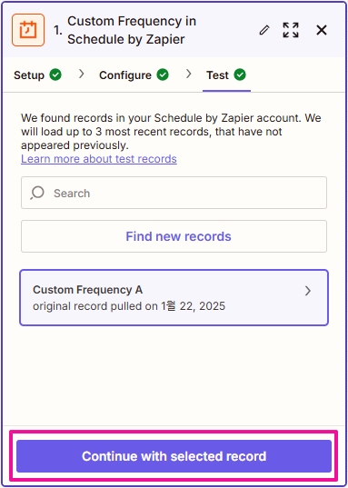 2-5) [Test trigger] 클릭 후 [Continue with selected record]를 클릭해 주세요.