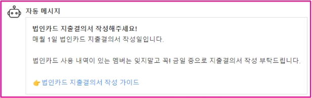 매월 1일 법인카드 사용 내역 제출을 멤버들에게 요청하고 계신다면