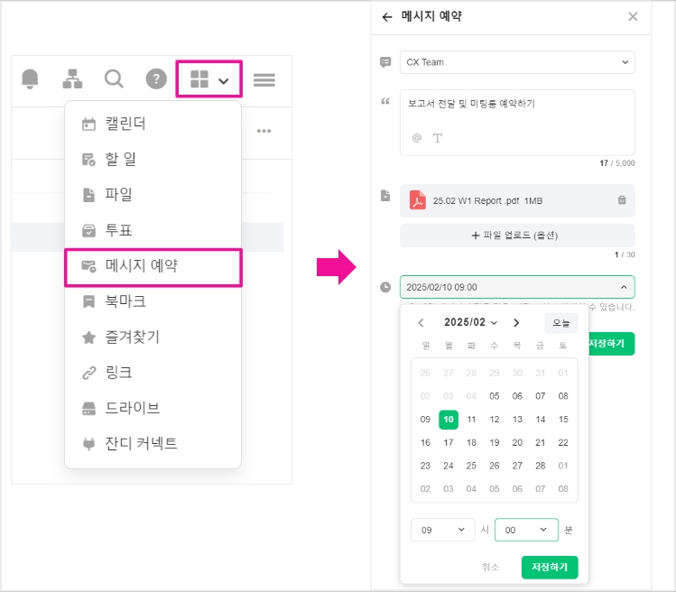 메시지 대화창 하단의 [메시지 예약] 아이콘