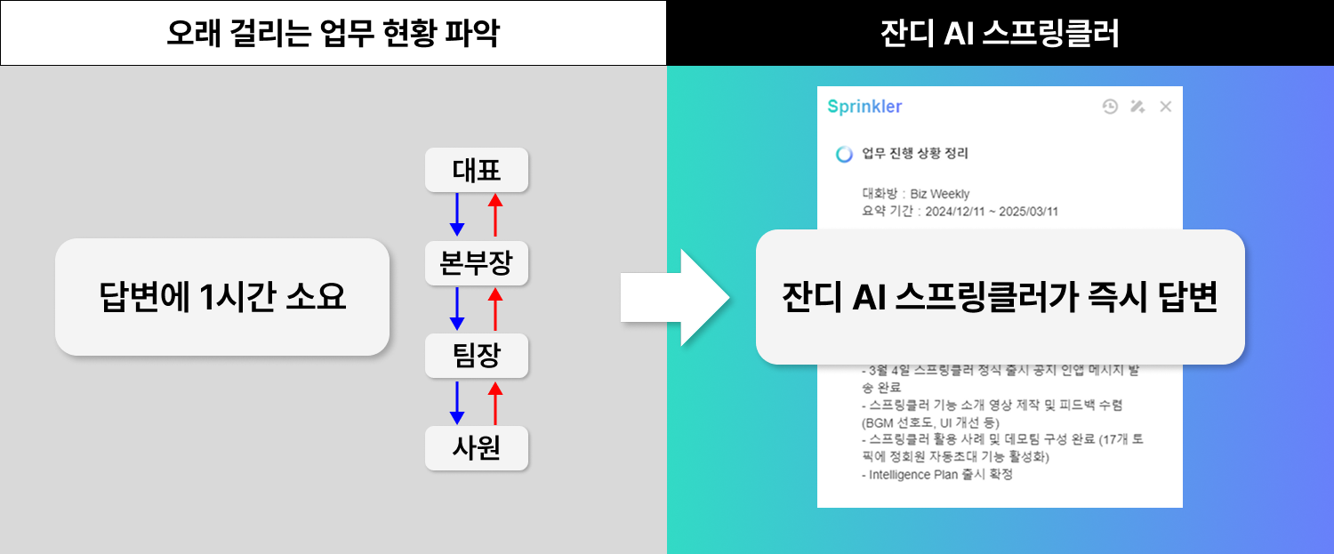 경영진분들도 잔디 AI 스프링클러를 통해 의사결정 효율을 높이실 수 있습니다.