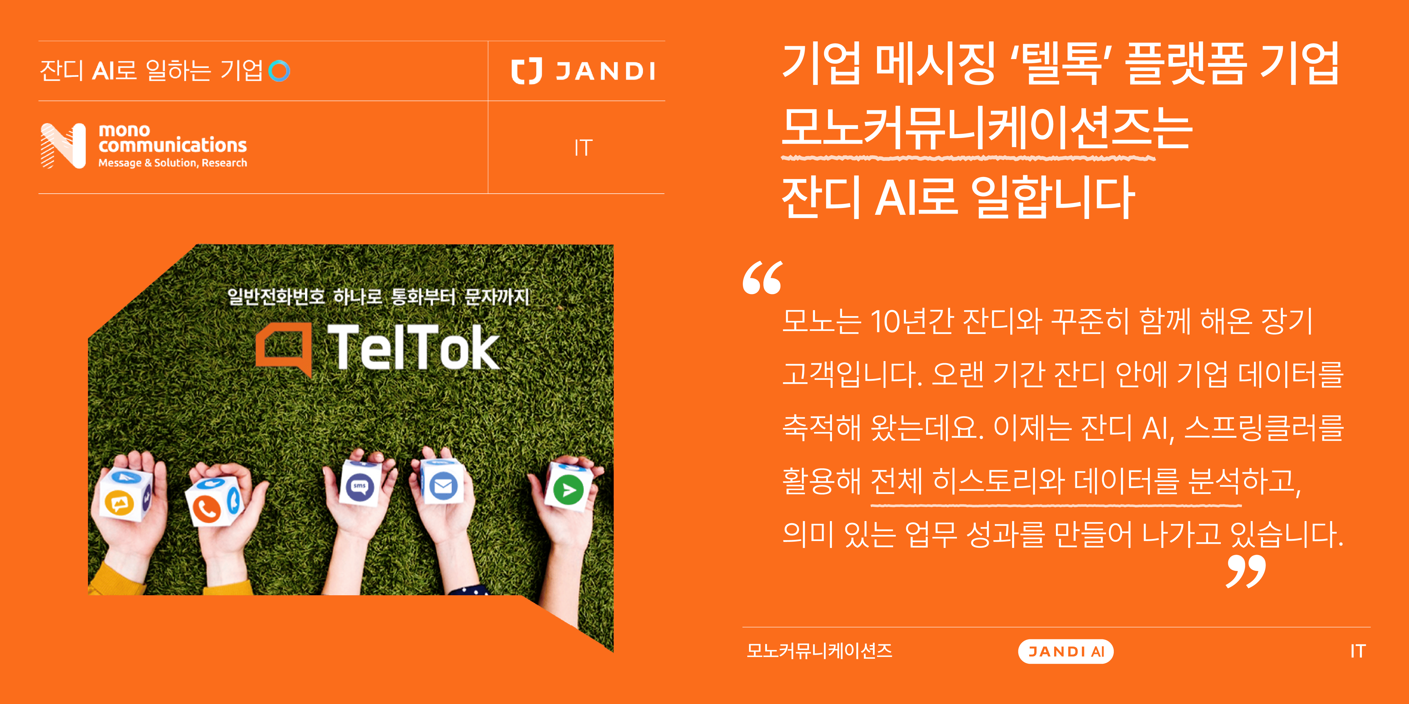 [잔디 AI로 일하는 기업] 기업 메시징 ‘텔톡’ 플랫폼 모노커뮤니케이션즈
