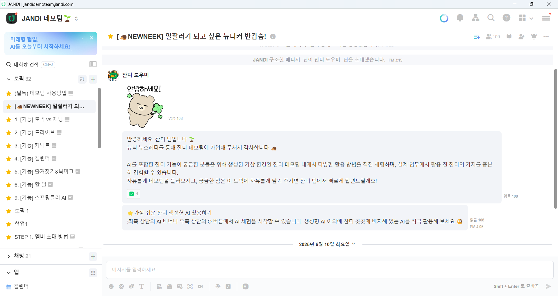 💡아직 잔디 AI를 활용해 보지 않으셨다면, 뉴스레터 내 삽입된 링크를 통해 잔디 데모팀으로 진입하실 수 있어요!