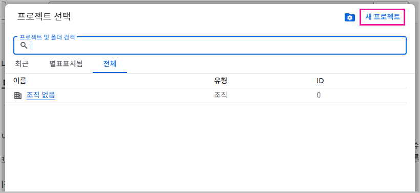 * ‘새 프로젝트’를 만들어 사용하시면 각 프로젝트별로 자원과 비용을 분리하여 관리할 수 있어 편리합니다.