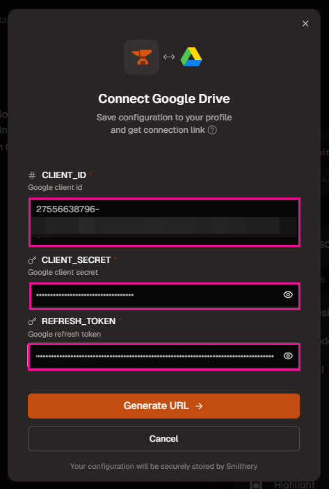 3-3) CLIENT_ID, CLIENT_SECRET, REFRESH_TOKEN에 위에서 발급받은 토큰을 입력해 주세요.