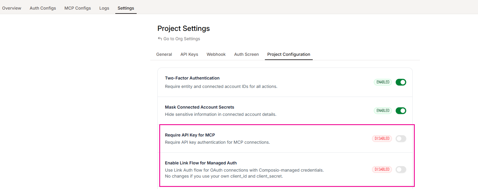 - Enable Link Flow for Managed Auth