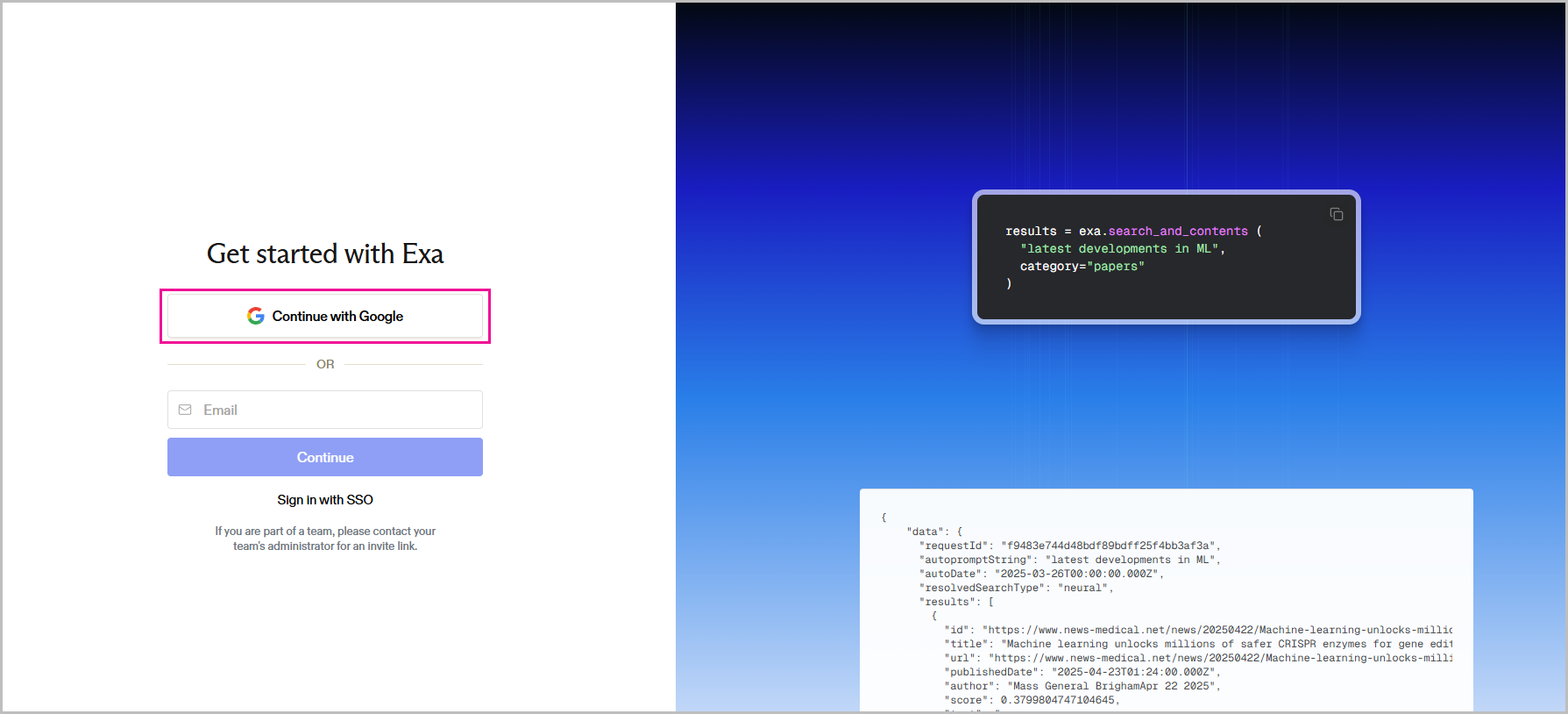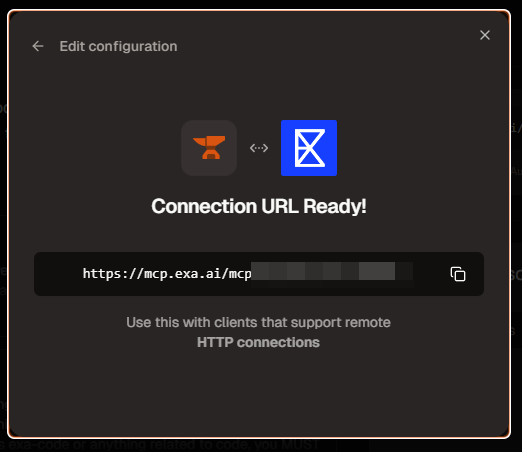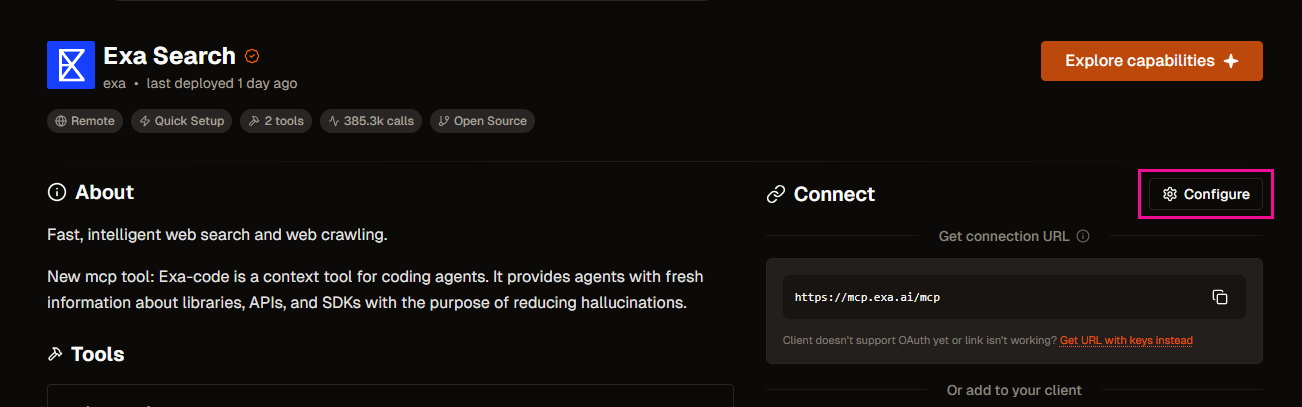 2-2) [Exa Search] 를 클릭한 후, 개별 URL 생성을 위해 우측 [⚙️Configure]을 클릭해 주세요.