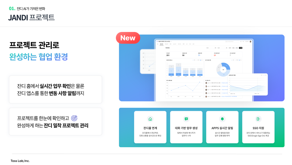 뿐만 아니라, 잔디가 새롭게 선보이는 기능인 ‘프로젝트 관리‘ 기능도 함께 소개했습니다. 잔디홈에서 AI로 업무를 수행하고, 프로젝트 기능을 통해 전반적인 업무 프로세스를 한눈에 관리할 수 있는 기업용 업무 환경을 제시했어요. 잔디 안에 누적된 고유한 데이터를 기반으로 활용할 수 있는 잔디만의 AI 경쟁력과 프로젝트 기능이 더해져 완성하는 업무 환경을 모두가 실감하셨길 바랍니다.