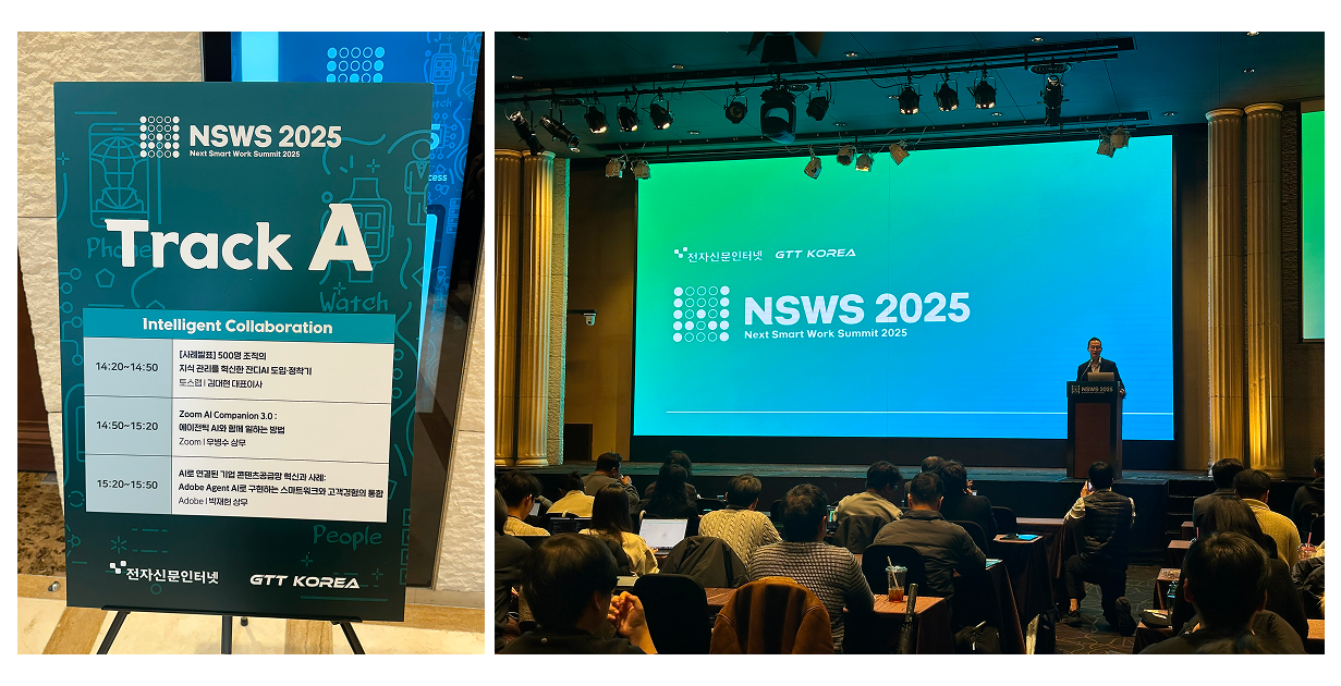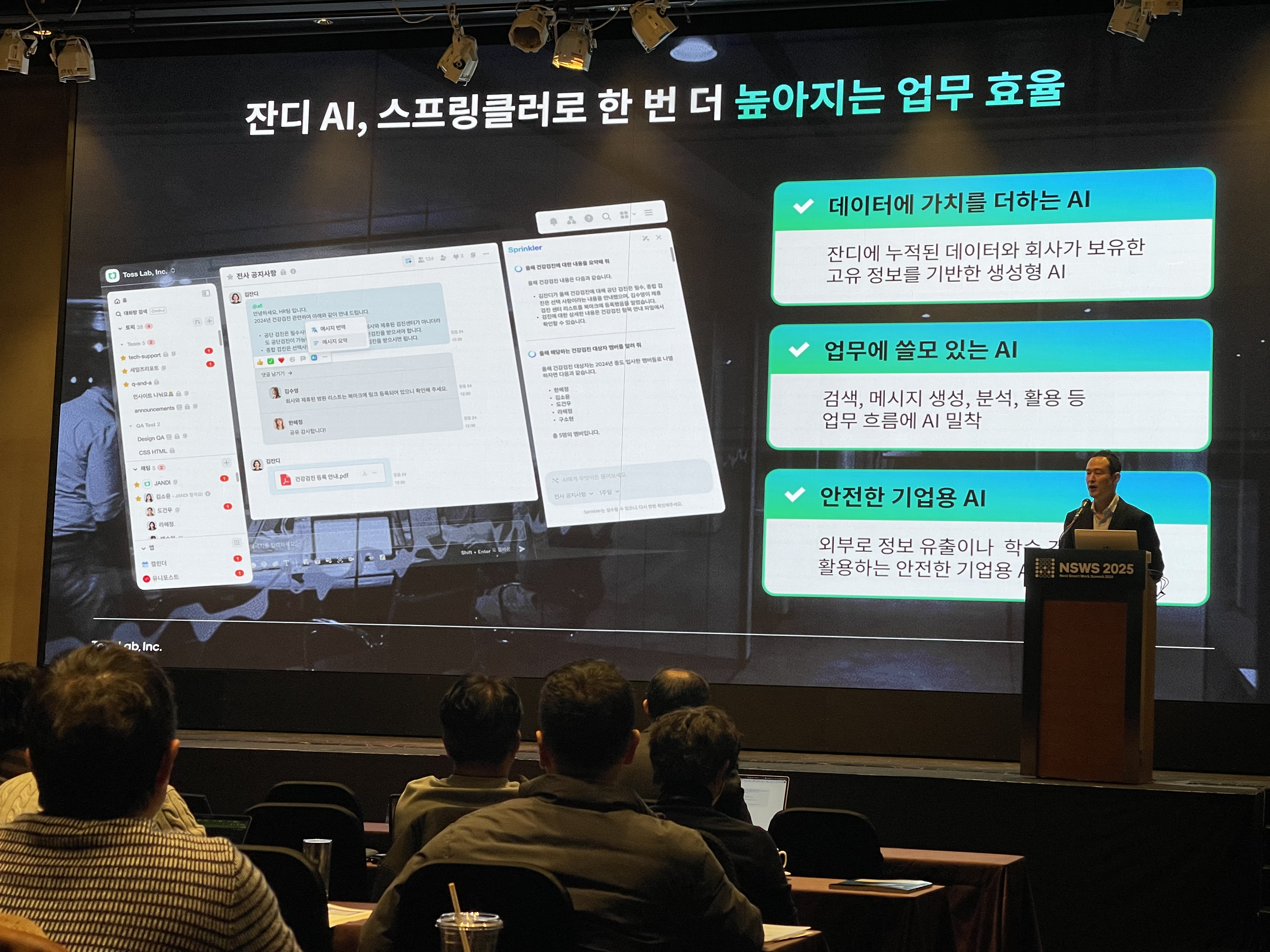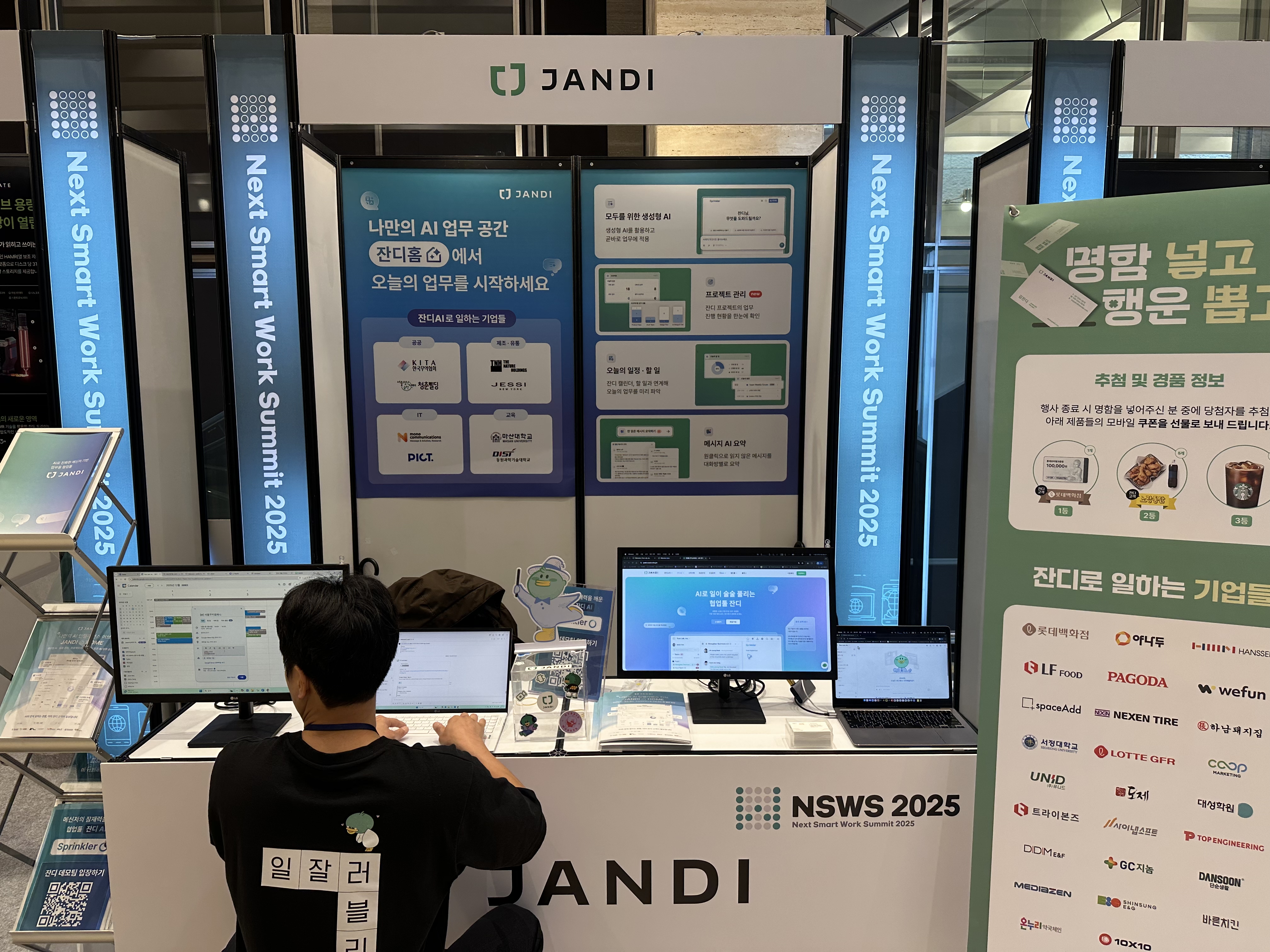 지난 11월 27일 목요일, “AI 퍼스트 스마트워크 : 비즈니스 성공을 가속하다”를 주제로 개최된 Next Smart Work Summit(NSWS) 2025에 잔디 팀이 참가했습니다.