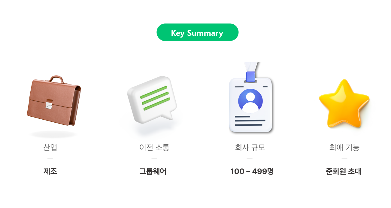 잔디로 다시 복귀하고 난 후, 거의 100% 업무 소통을 잔디로 할 수 있게 되어 전체적인 업무 효율이 크게 늘었습니다. 실제로 그룹웨어 메신저에 적응하기 어려워 메신저 기능과 관련해 질의했던 구성원들의 문의가 90% 이상 감소하면서 누구나 쓰기 쉬운 잔디의 환경 덕분에 제 업무 환경도 개선되었습니다.