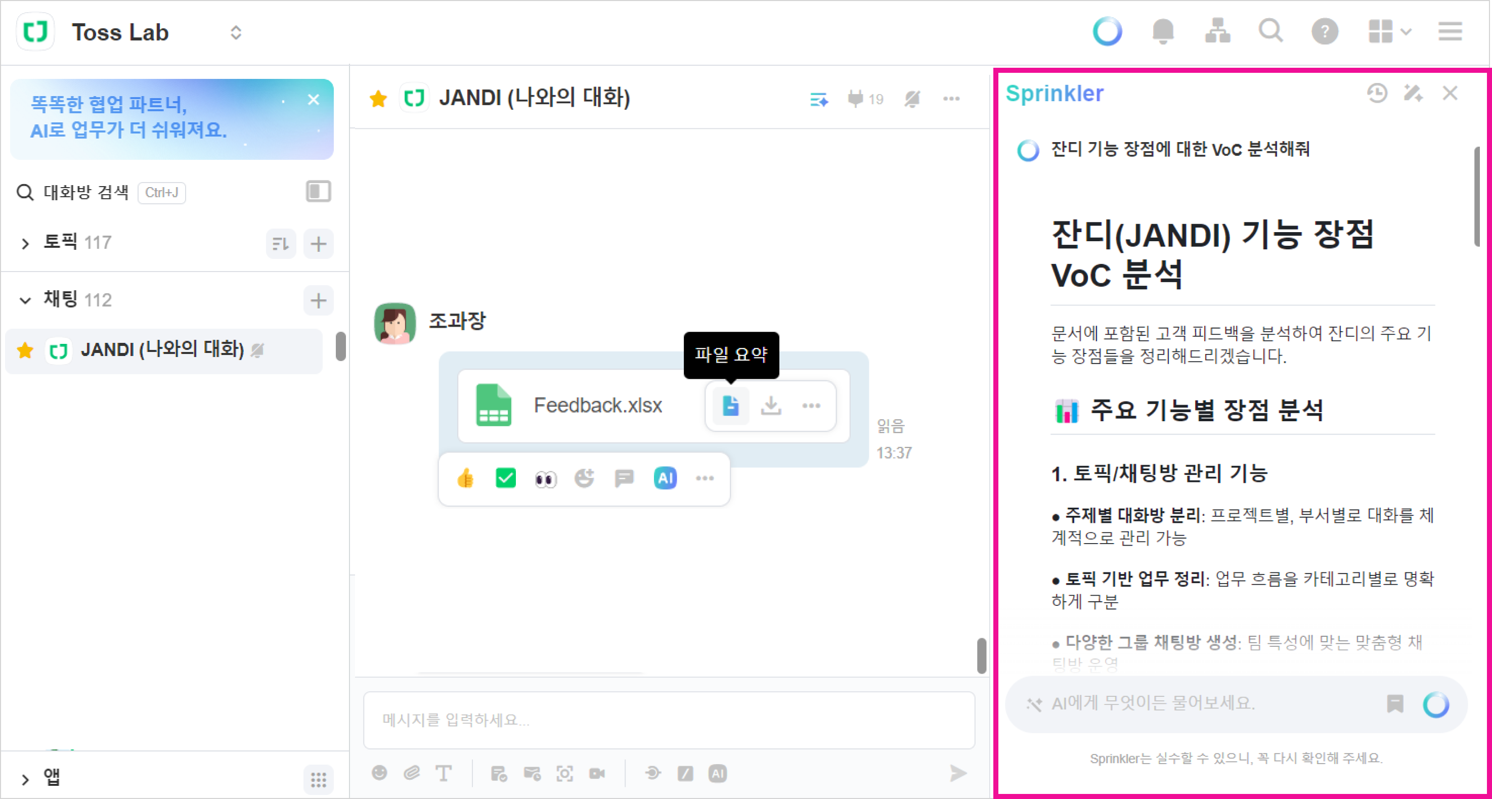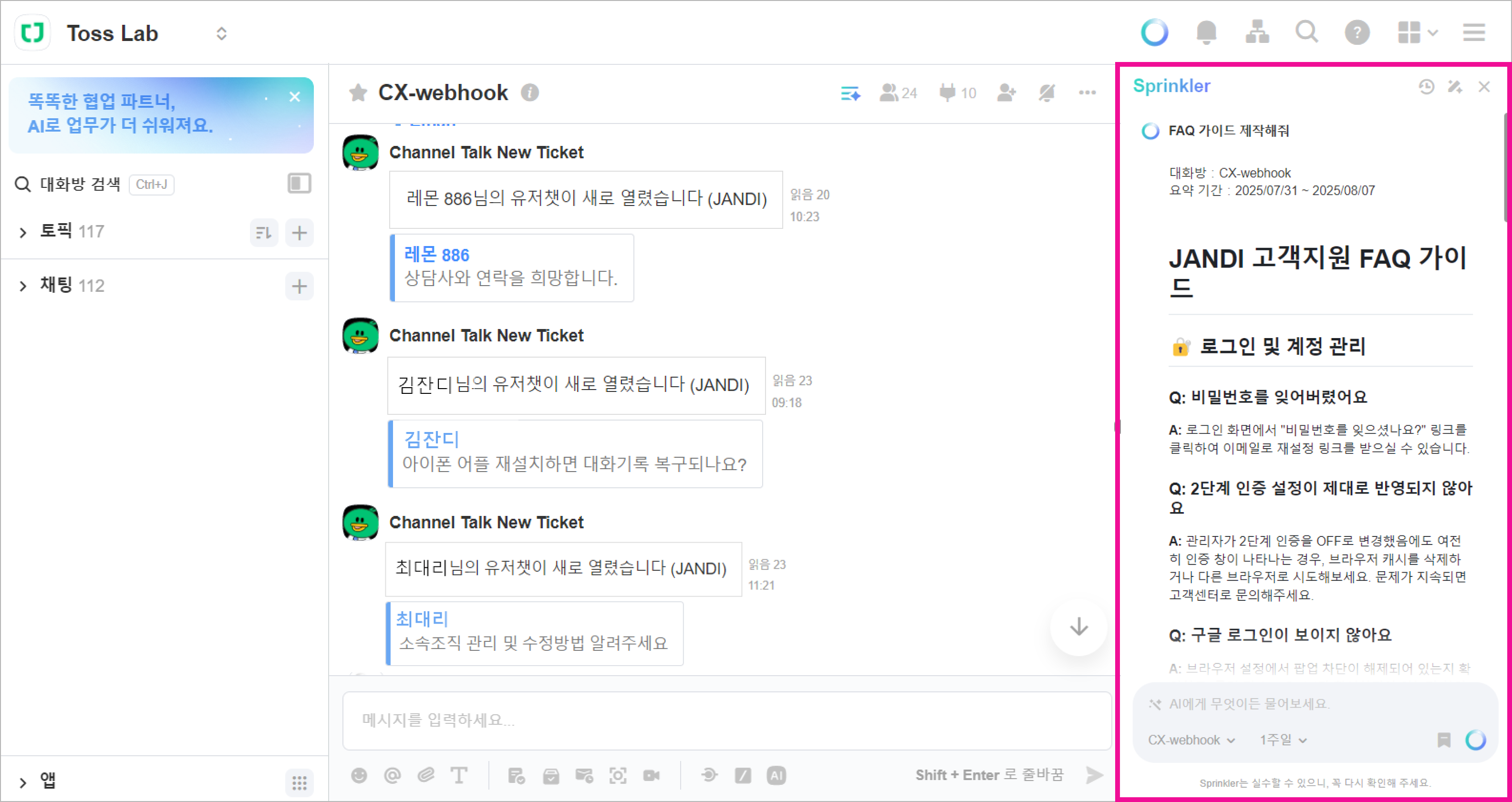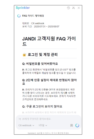 잔디 AI 기능은 Sprinkler를 활용하면 VoC(고객의 소리)를 분석하고 FAQ 가이드를 손쉽게 제작할 수 있다는 사실 알고 계셨나요?