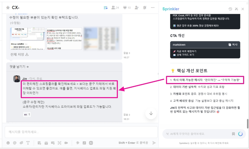 “팀장님 성향을 기준으로 해당 파일 피드백 줘”