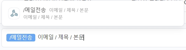 메시지 입력창에 ‘/(커맨드)’ 혹은 ‘/(커맨드) 아이콘 클릭’ 으로 웹훅을 실행해주세요.