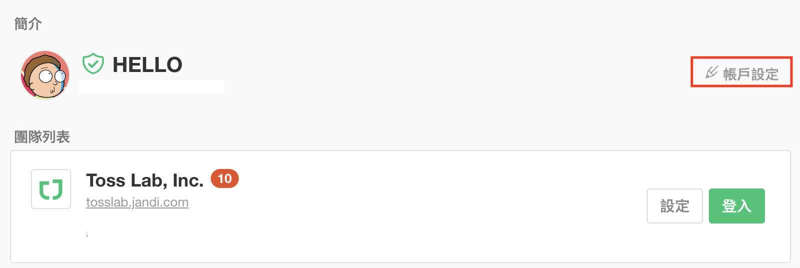 - JANDI 主頁 > 點擊帳戶設定