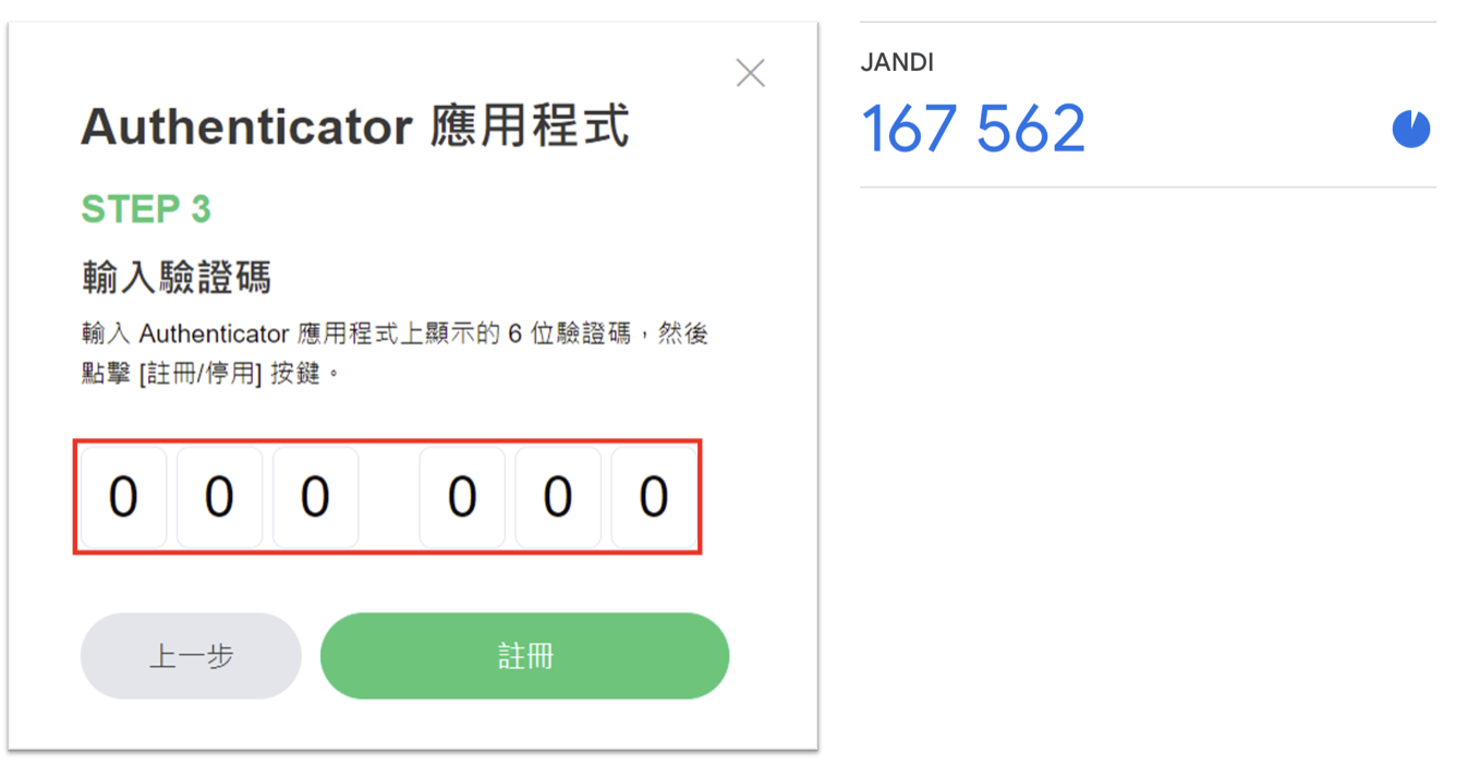 - 以下內容都皆以Google OTP 應用程式作為示範說明