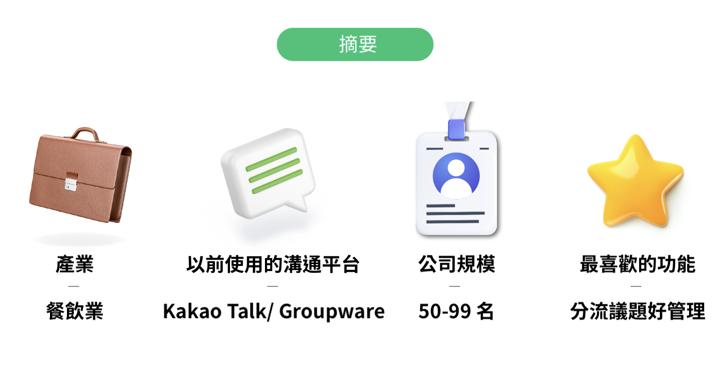 此外,公司的重要文件在 Kakao Talk 上過了一段時候後就會無法讀取下載,而必須重新請員工上傳。