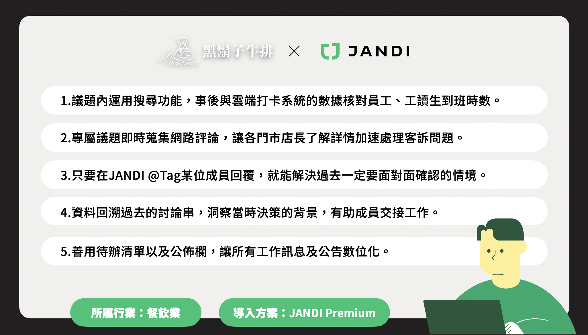 黑鬍子牛排運用 JANDI 邁向數位化協作,記錄所有討論訊息幫助決策有所本