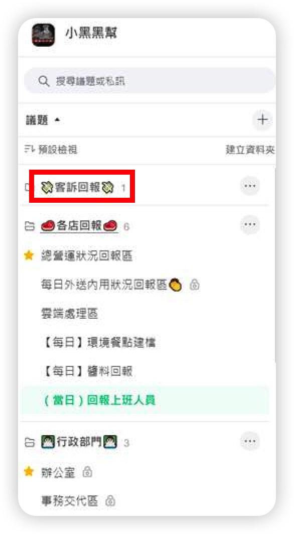 例如 JANDI 用戶之一的黑鬍子牛排,他們直接在 JANDI 成立專屬的客訴處理議題,員工會每天到各平台蒐集網路評論,看到負面、不滿意的評論,就會截圖後放到議題內討論。尤其是有些店家有多間門市,如果網路評論友特別指定某一家門市的問題,客服主管就能把訊息提供給該門市店長,確認問題發生的日期、時間、經過,讓店長主動聯繫,並強化教育訓練。
