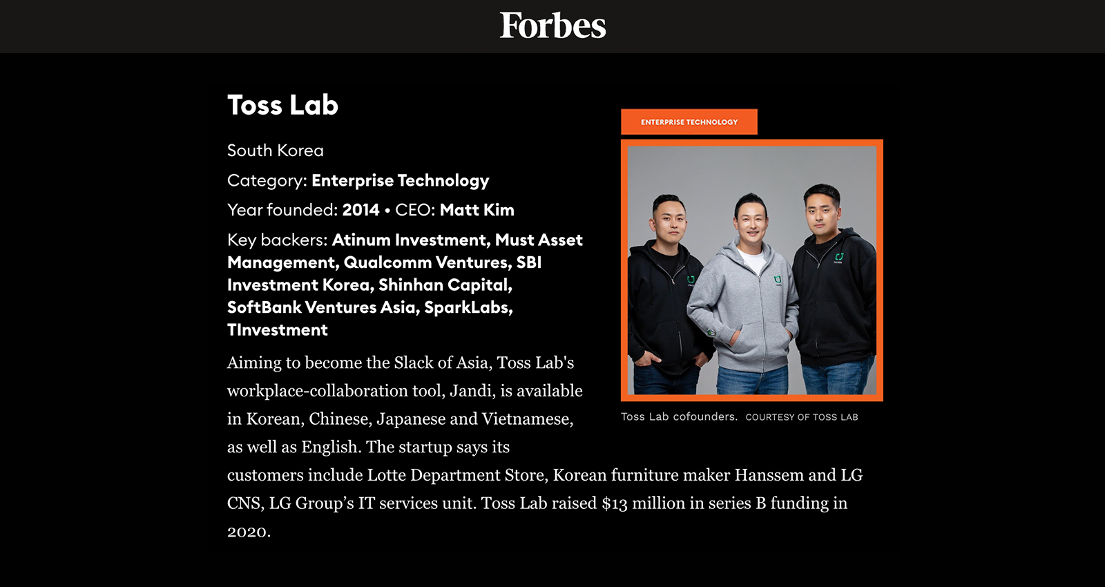 Toss Lab 被富比士評選為 『亞洲 100 家最具潛力公司』🎉
