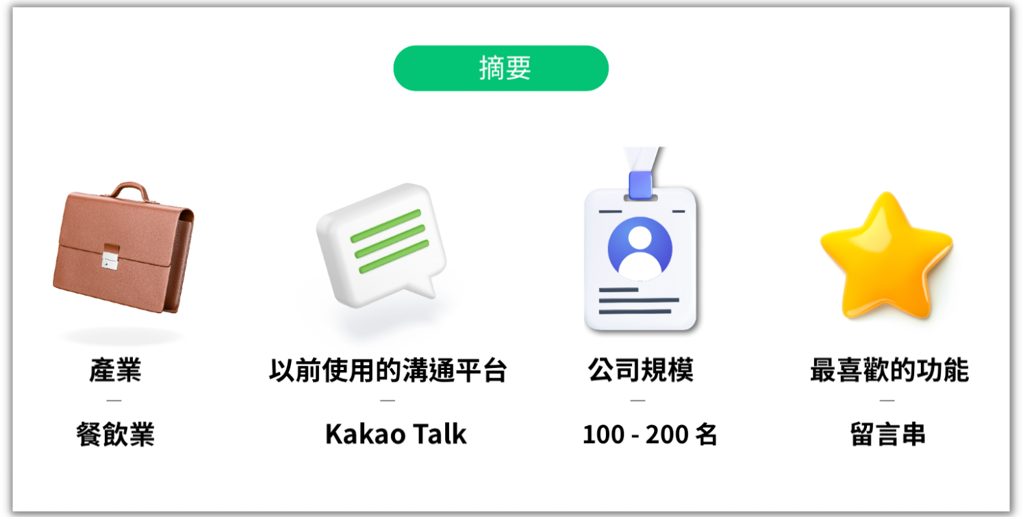 隨著公司漸漸成長,新成員也越來越多。但在 Kakao Talk 中,即使把新成員加進現有聊天室,新成員也看不見過往歷史紀錄。為了讓新成員們可以快速上手業務,溝通時間不得已變得越來越長。在 Kakao Talk 上協調開會時間以及討論休假事宜也覺得不是很方便,所以我們覺得是時候引進專門『為工作設計』的協作軟體來幫助我們了。