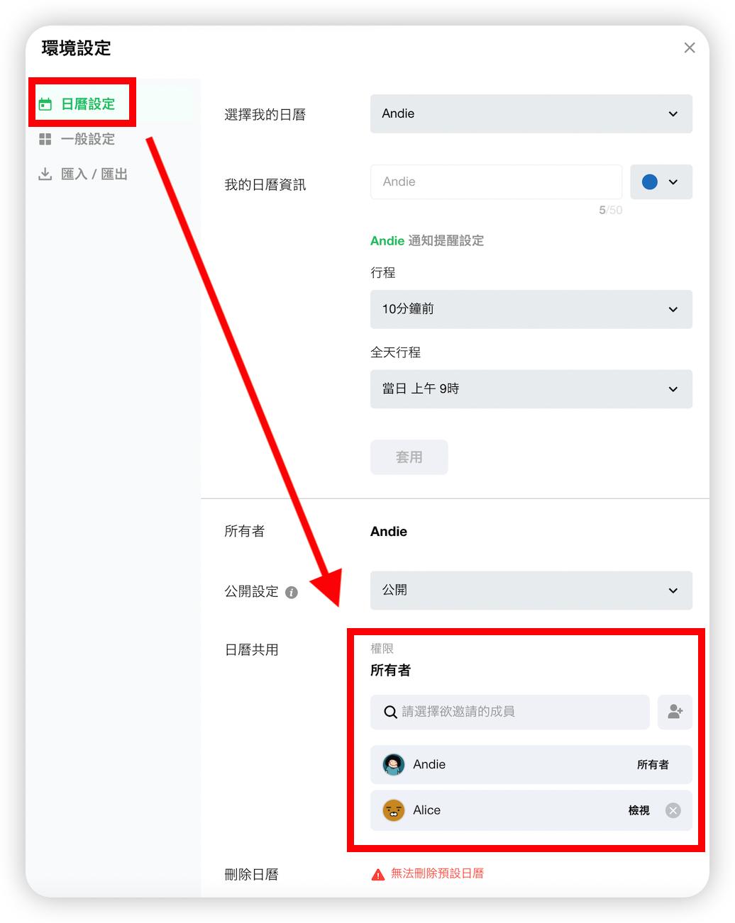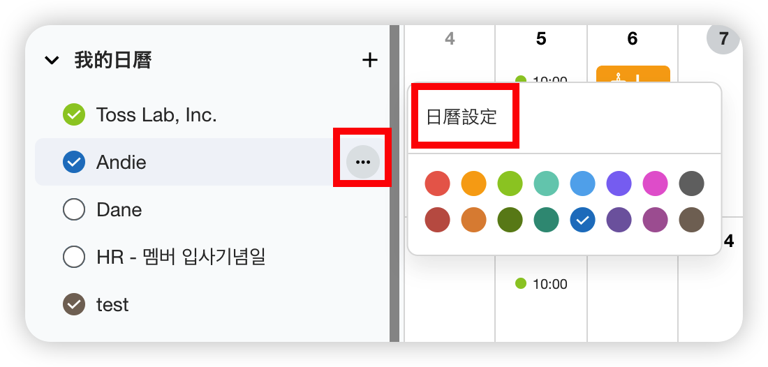 • 選擇您新日曆的 […] -> 選擇「日曆設定』