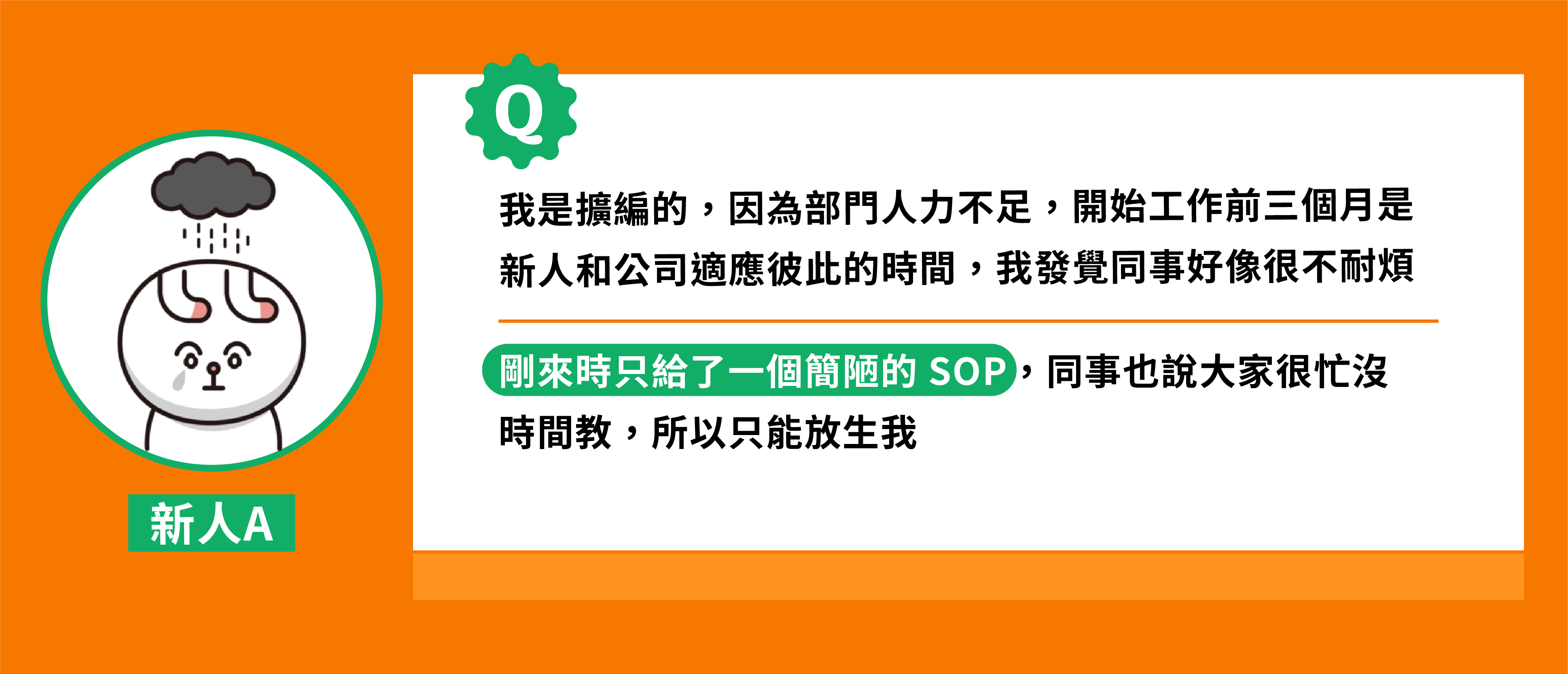 如此一來,不僅可以讓新鮮人日後參考,甚至也在幫之後的新人鋪路,讓對方可以回溯訊息,知道遇到相似狀況可以怎麼處理。