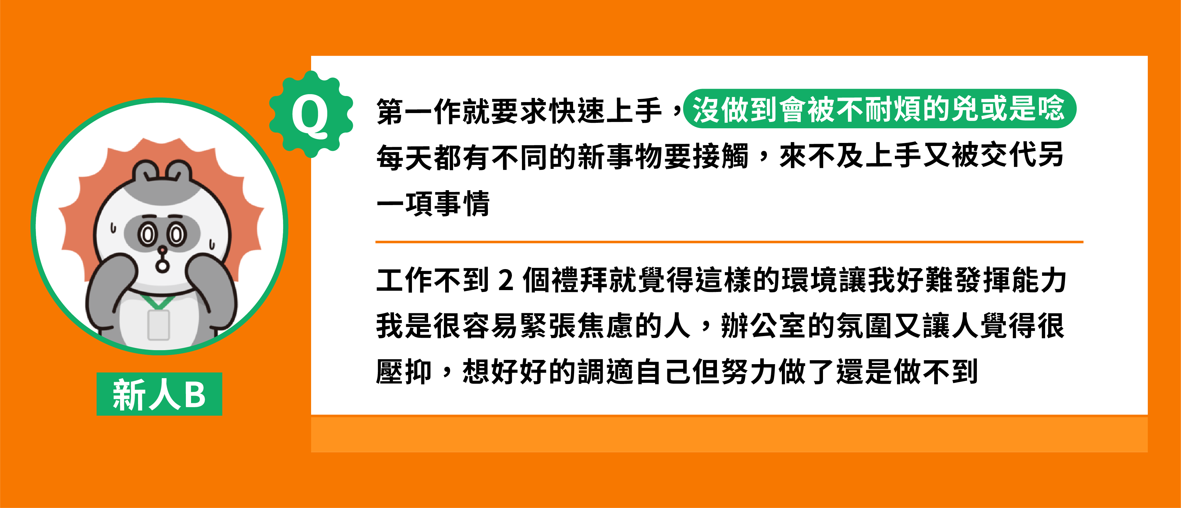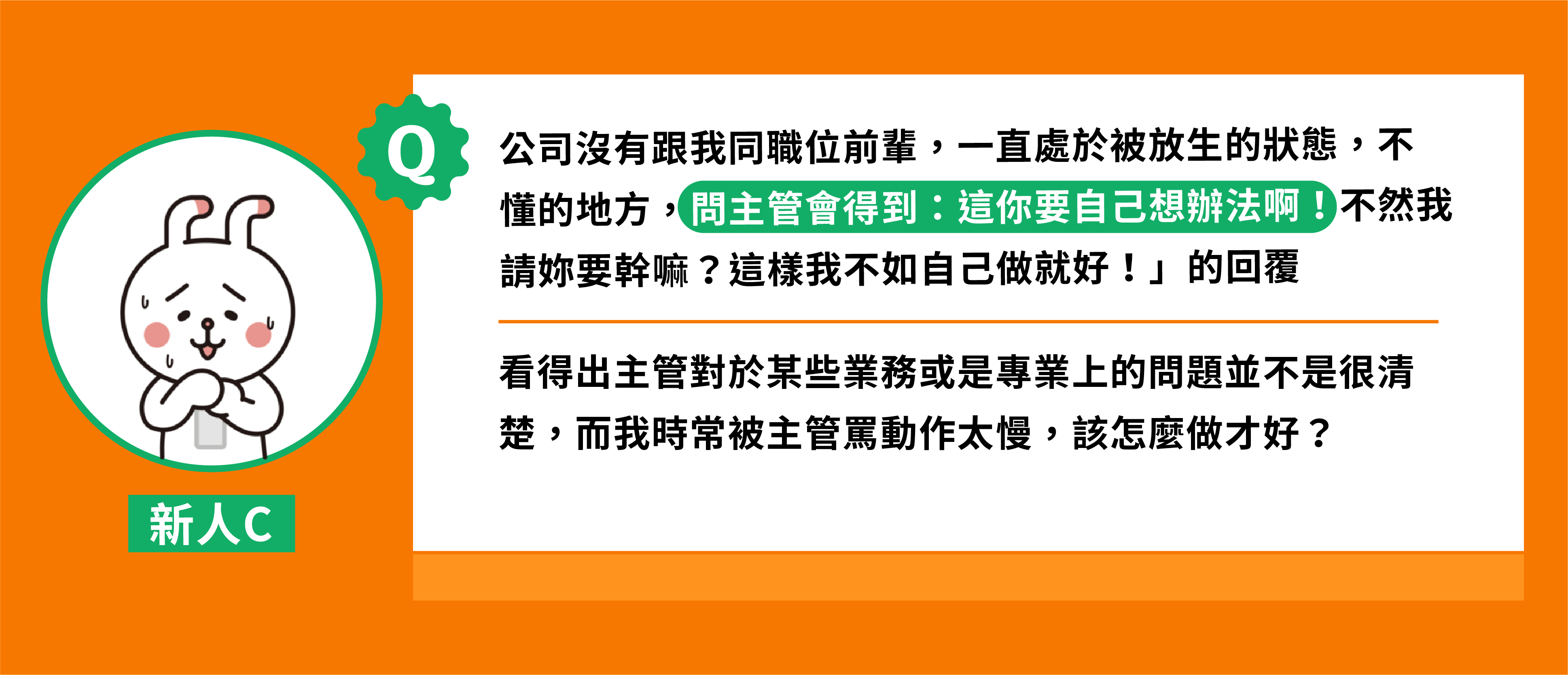 - 針對上述問題,新人是否找到解決方法?或希望前輩或公司提供哪些支援?