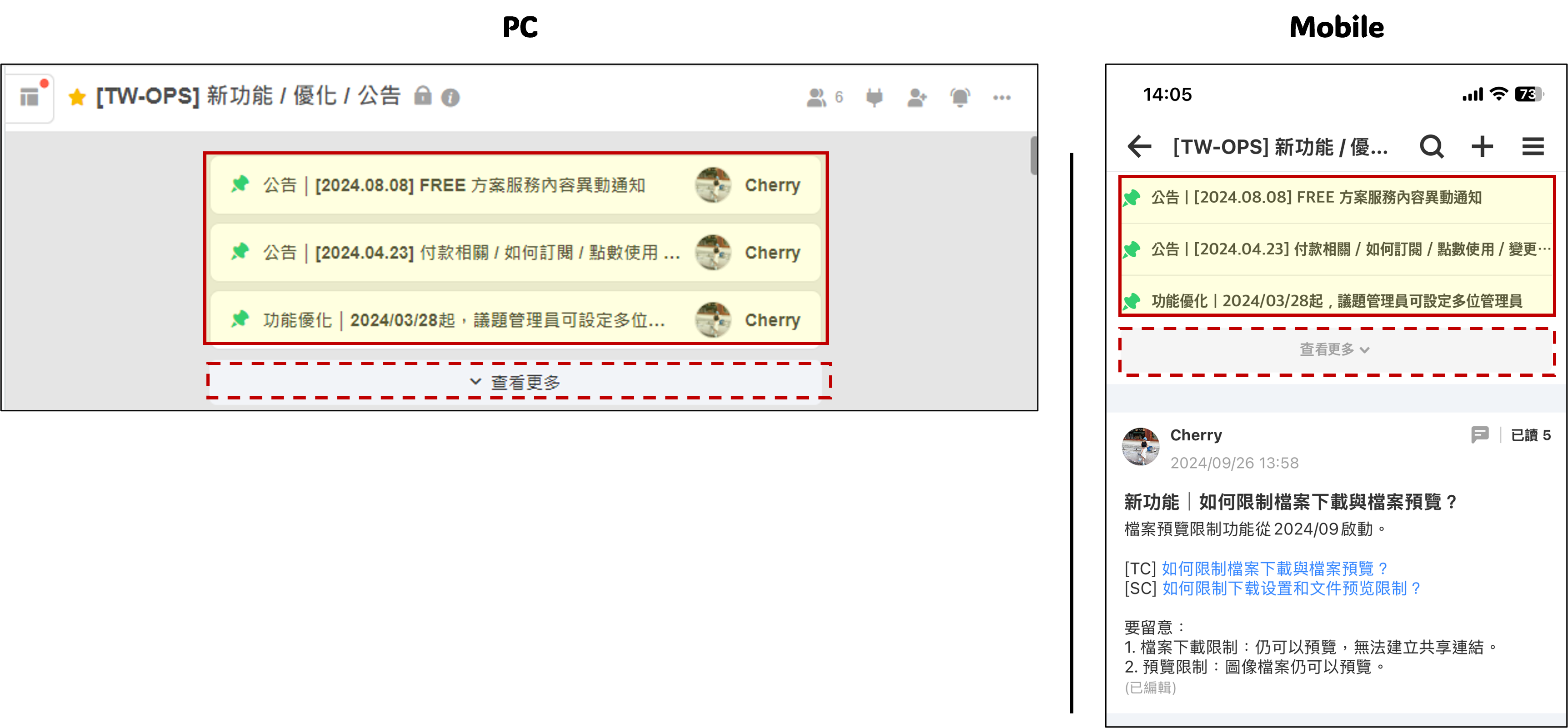 現在起,記事板議題(公告欄)新增了貼文釘選的功能