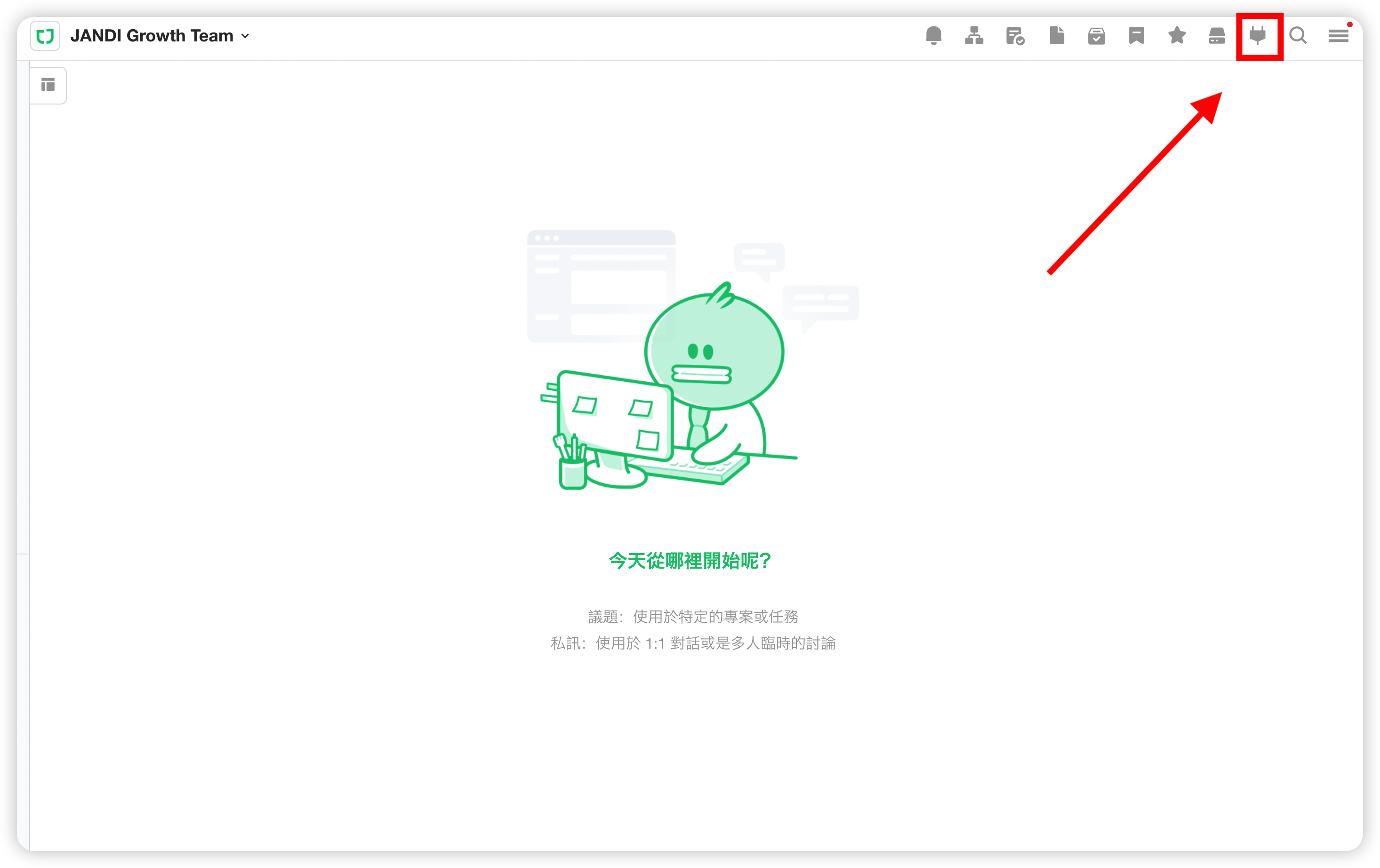 1-1) 點擊 JANDI 右上方 JANDI Connect 的圖示