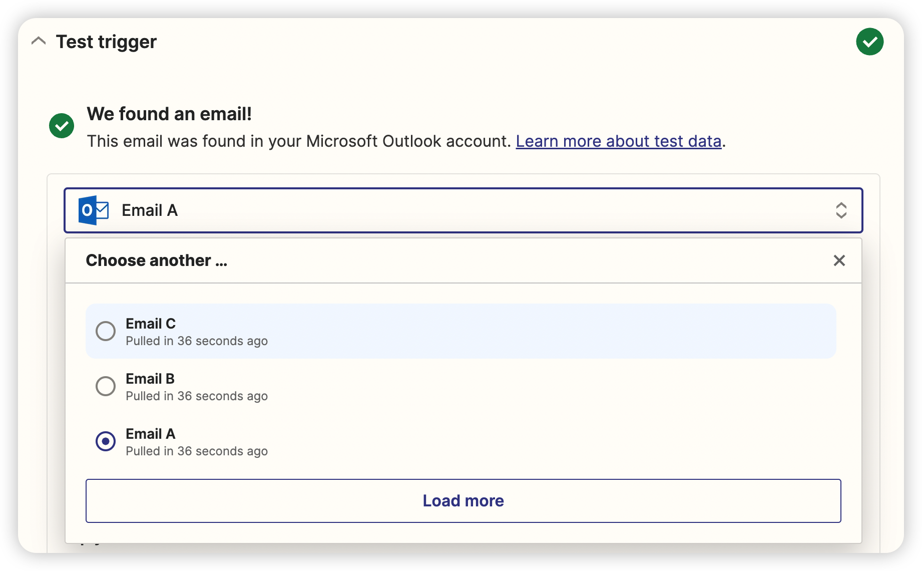 1-8) 選擇 Test Trigger,任選一封郵件做測試。