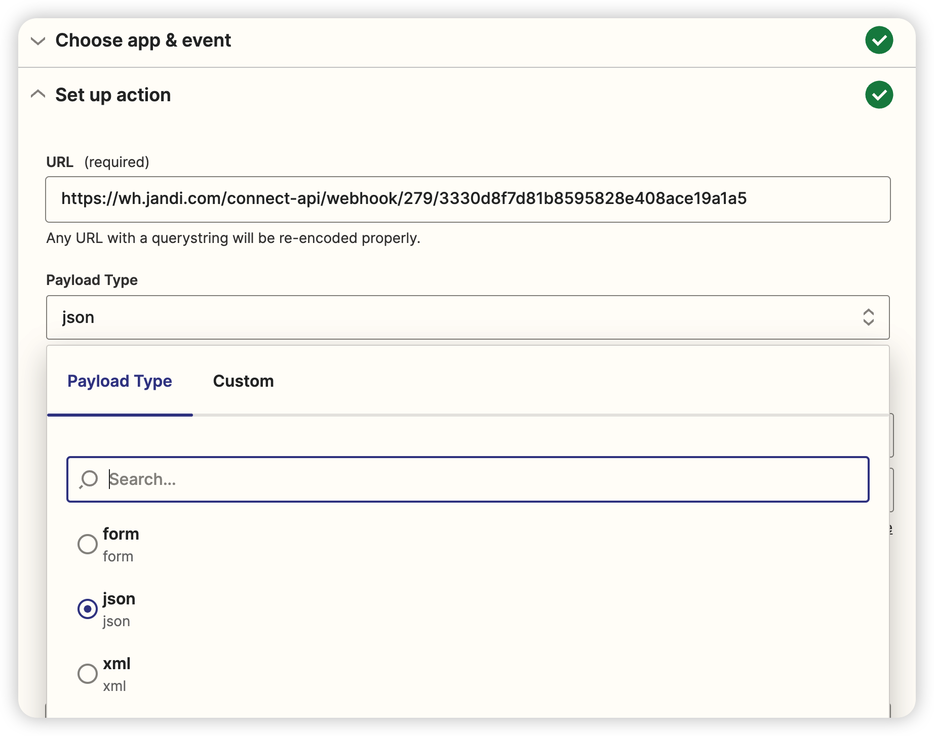 - Payload Type 的種類請選擇 Json。