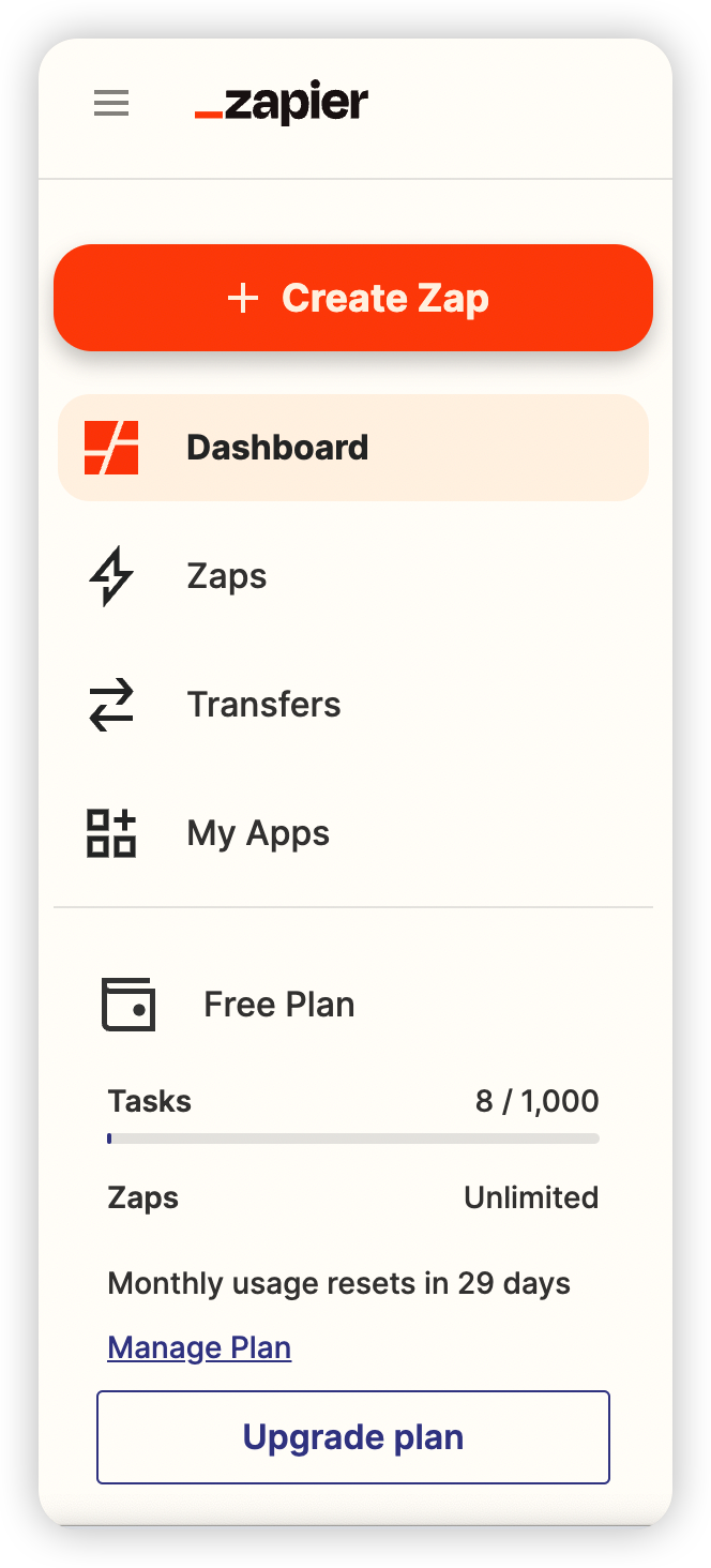 註冊登入 Zapier 後,點擊 Zapier 左側的 Create Zap。