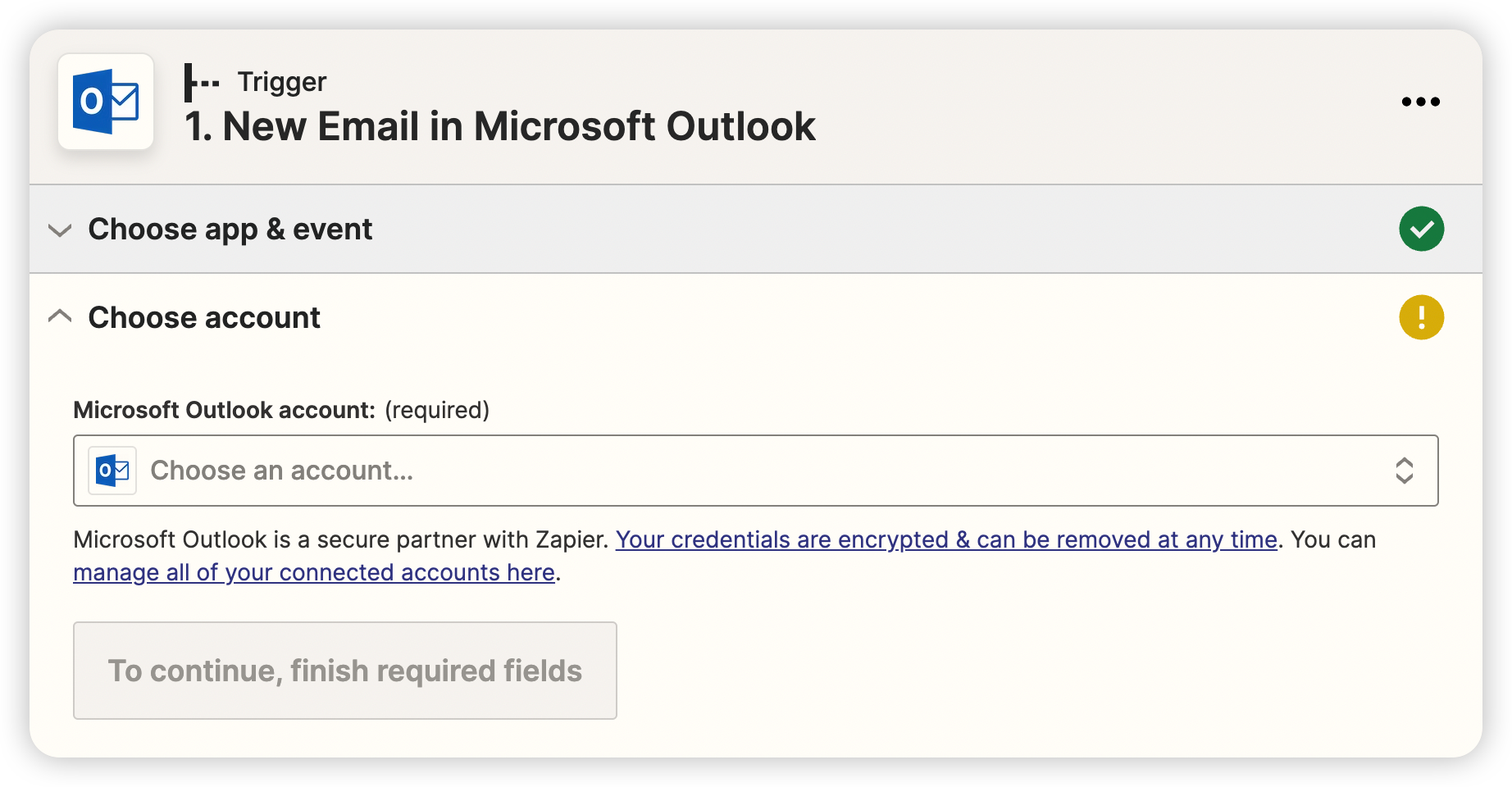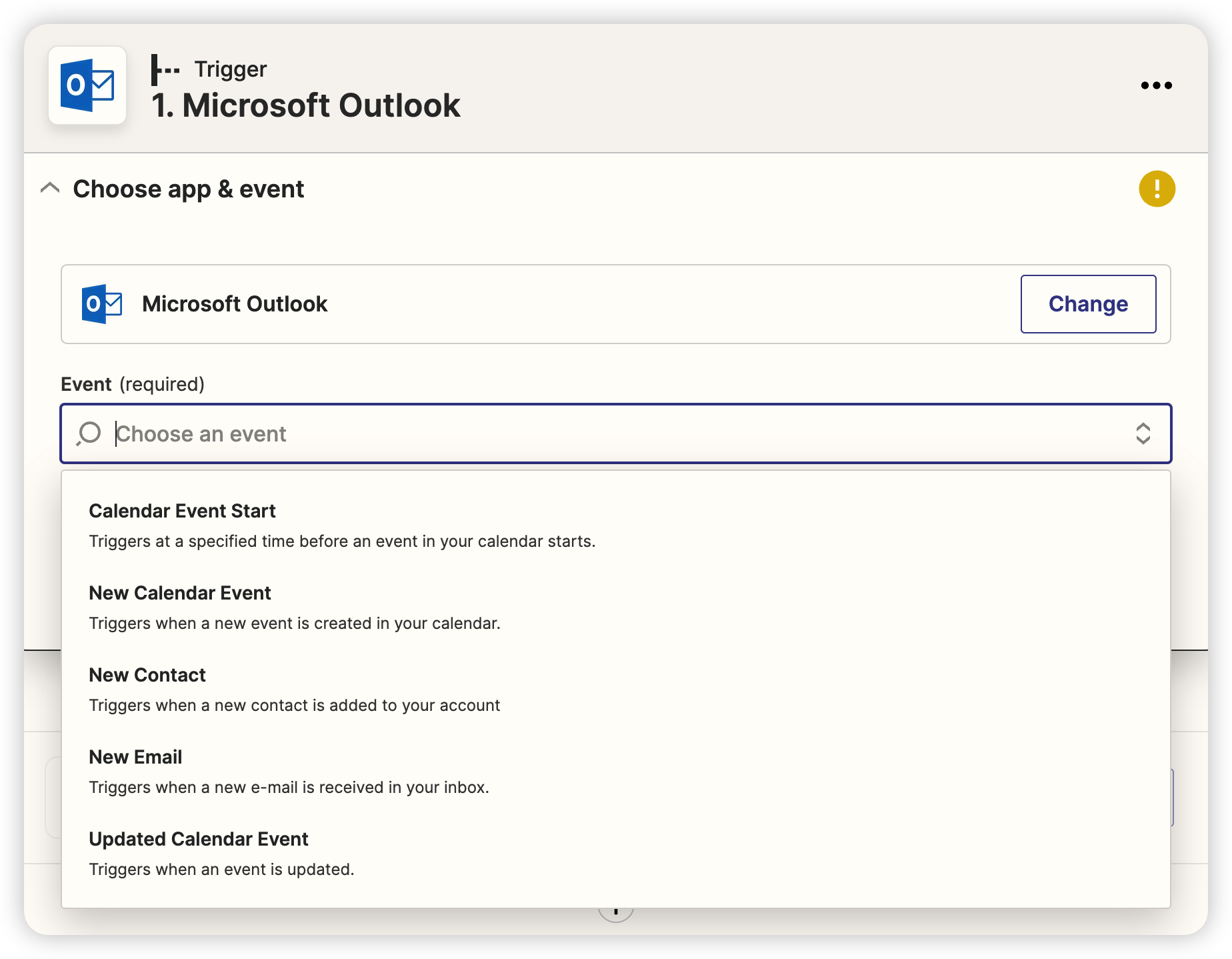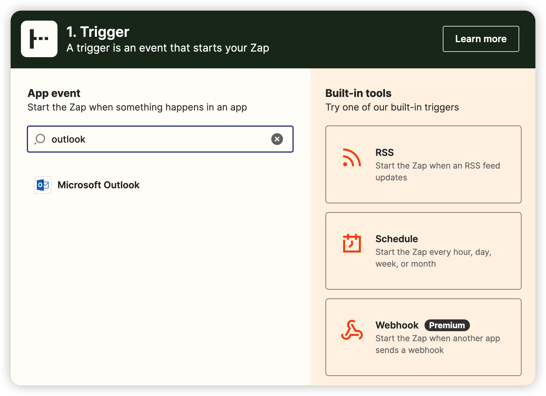 1-5) 在 Trigger 中搜尋 Outlook 並選擇。