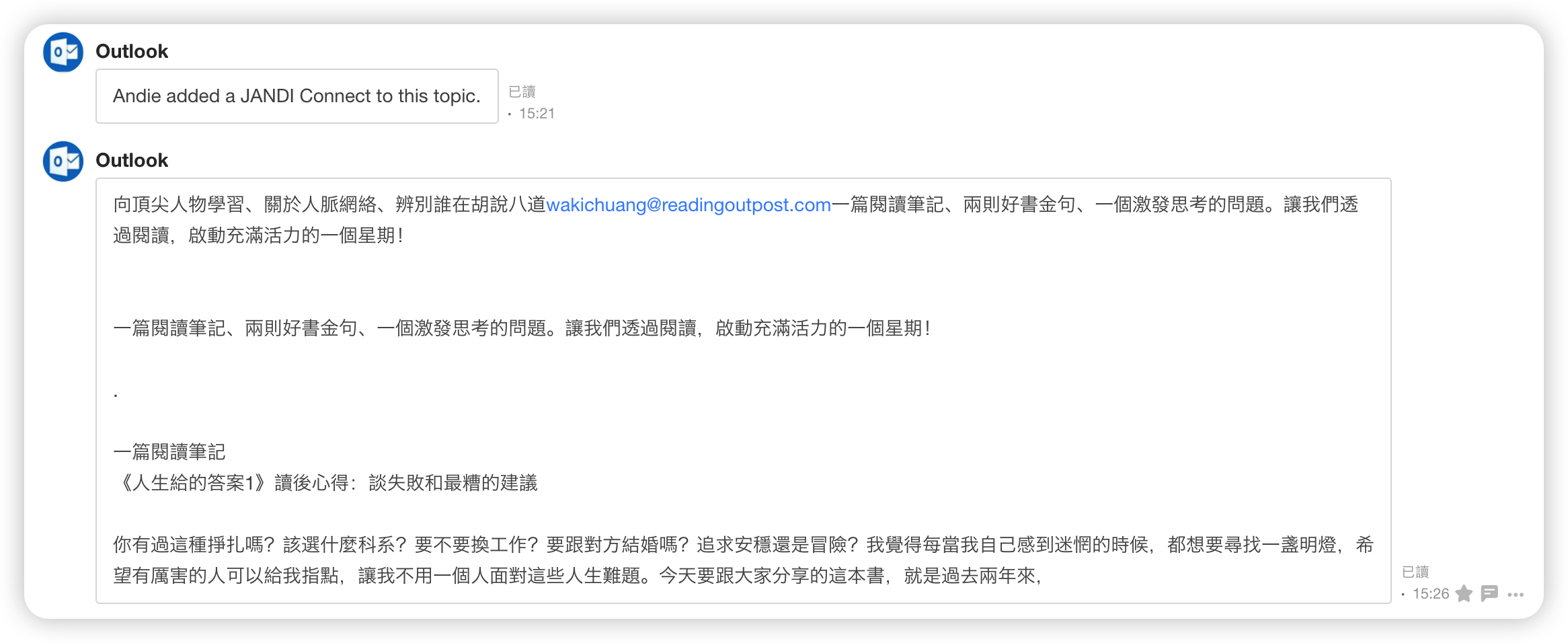 【JANDI Connect】把 Outlook 串聯到 JANDI 的方法!