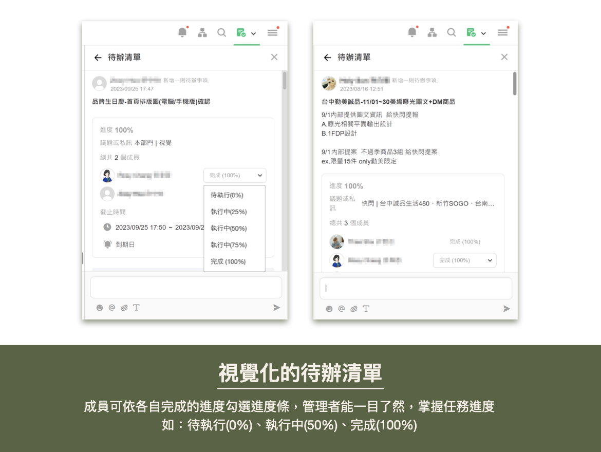 第二個策略針對執行過程,要確實追縱自己的工作進度,同時也把工作完成度回報給主管,那就可以透過 JANDI 的待辦清單功能,針對每個小任務設定專屬的待辦清單,透過預先時間通知,確保每個任務在預定時間內完成。而且也能把待辦清單的更新進度,匯報給其他一起協作的成員及主管,讓所有夥伴都能用相同的工作節奏及速率前進。