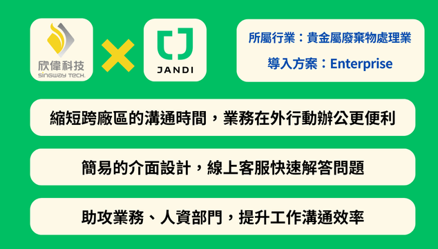 所屬行業:貴金屬廢棄物處理業 │ 導入方案:JANDI Enterprise