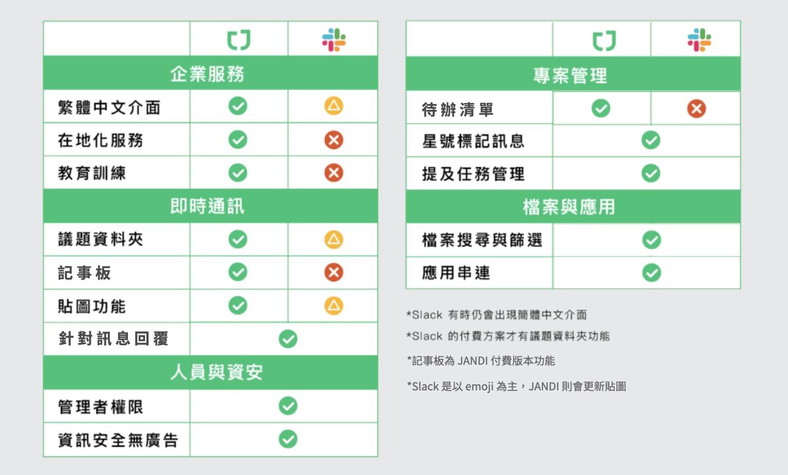 產品功能面:JANDI 與 Slack 的差異?
