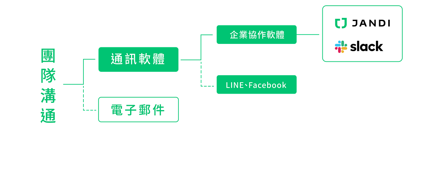 所以基於人們更方便地溝通,大眾/私人通訊軟體出現了(臉書 Messenger 或 LINE),然而這些軟體原先的設計,就不是作為工作協作用的。