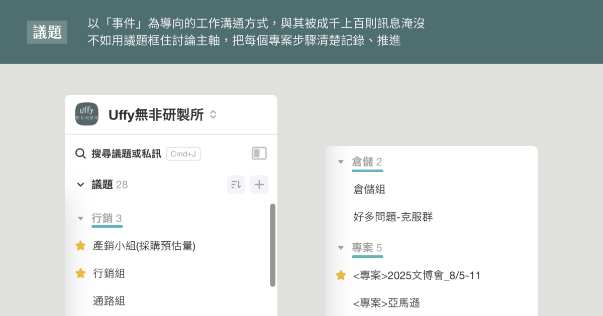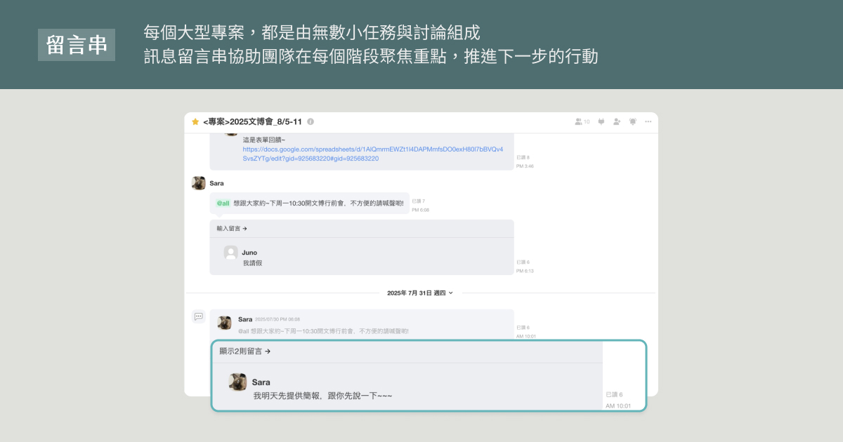 l 讓對話有脈絡 — 訊息串讓溝通聚焦同一個架構