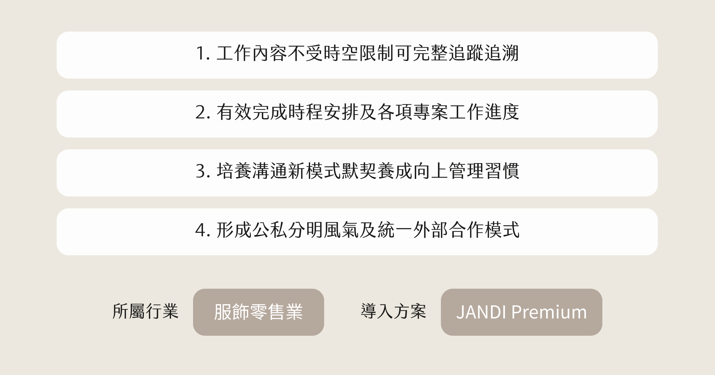 所屬行業:服飾零售業 │ 導入方案:JANDI Premium