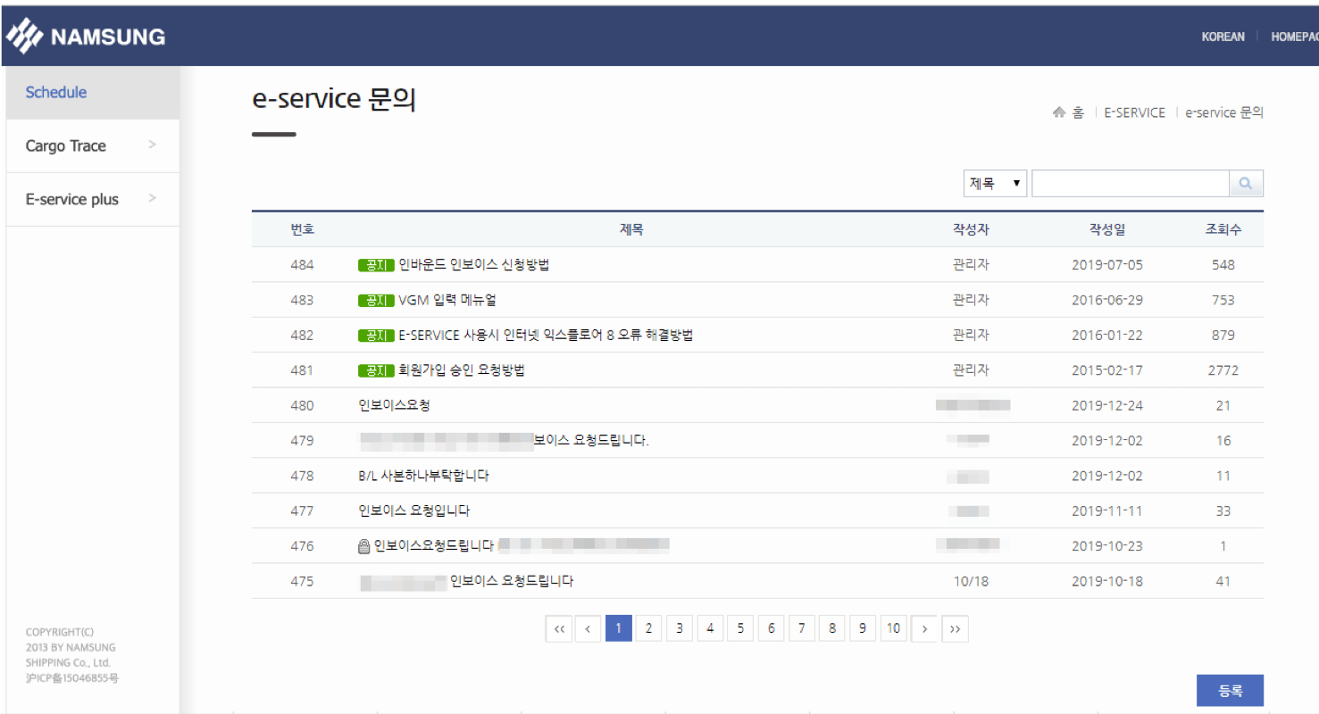 < Trang E-Service trên trang chủ của Nam Sung Marine >